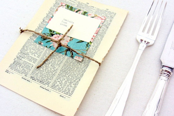 Escort/place cards with vintage book pages by Roseanna Willis